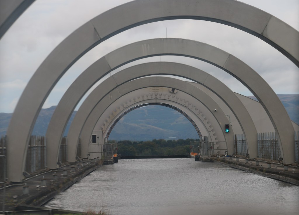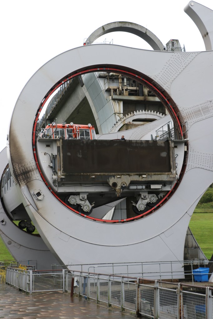 This is an inspired piece of planning and outstanding engineering. It is unique in the world. It’s purpose is to do away with a huge number of water locks on a canal system that connnects Glasgow and Edingburgh.