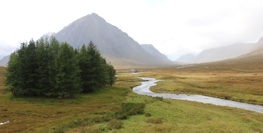 The road climbs all the time, and then over one winding section you emerge and are confronted by the vast area of Rannoch Moor, framed on all sides the steeply rising mountains. Just about my most favourite place in the world.