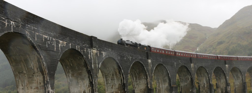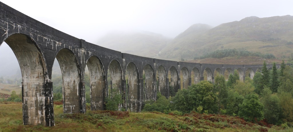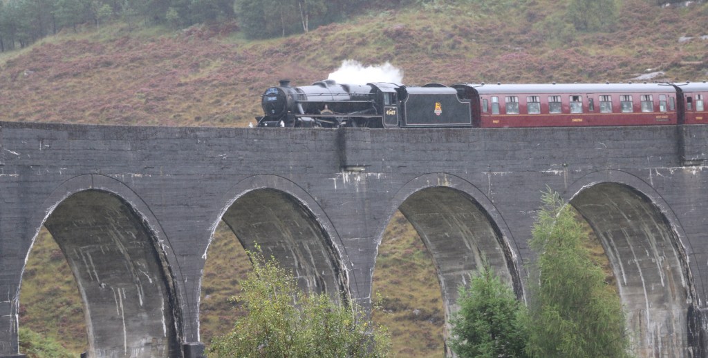 Today we set out for the Isle of Skye, and we are in no rush which is a good thing, given the weather. We do have a timetable, as we have to be at, and ready to photograph, the Jacobite steam train crossing the Glenfinnan Viaduct at 10.45 am. As every good Harry Potter fan knows, the train is actually the Hogwarts Express.