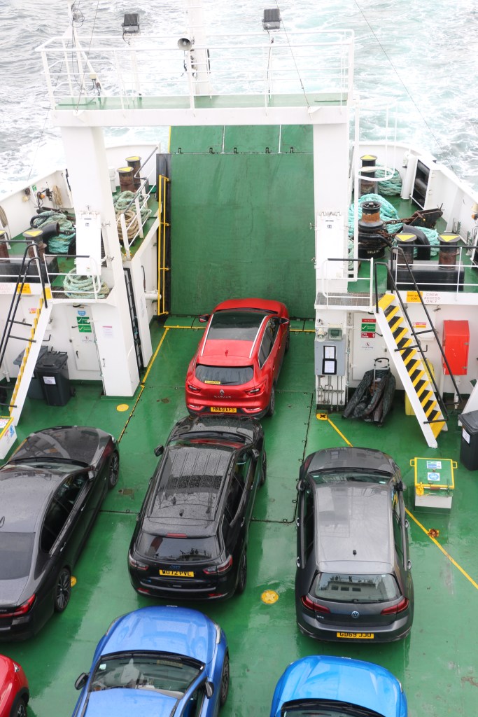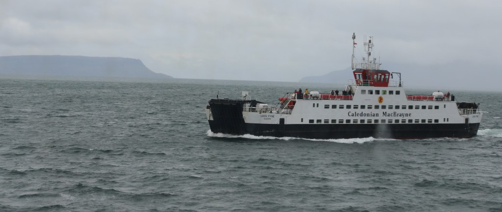 Now, onto Mallaig where our next appointment was with a ferry to carry across the water to Syke. A town called Armadale to be precise. We were in plenty of time, but the best part of the drive (apart from the dramatic scenery) was that we caught up with the steam train, and parralleled it,with Kate taking a fantastic video.