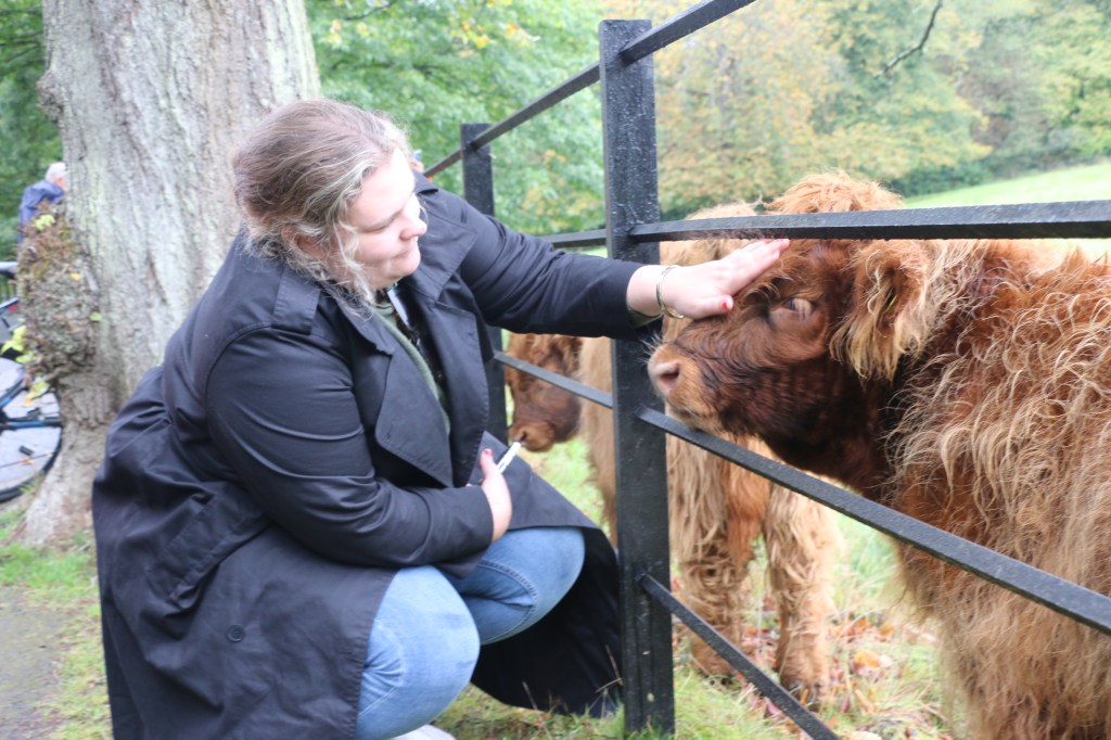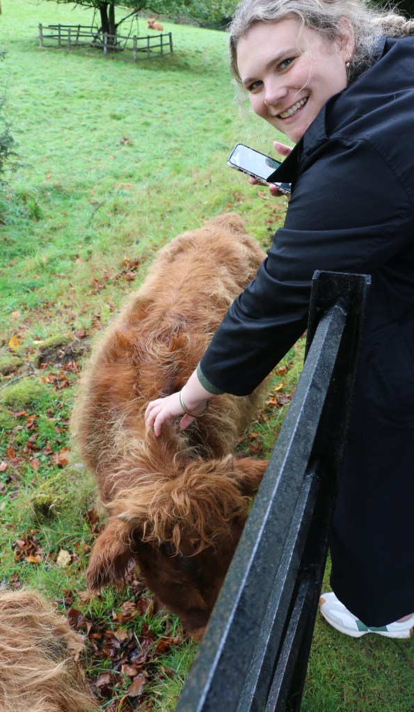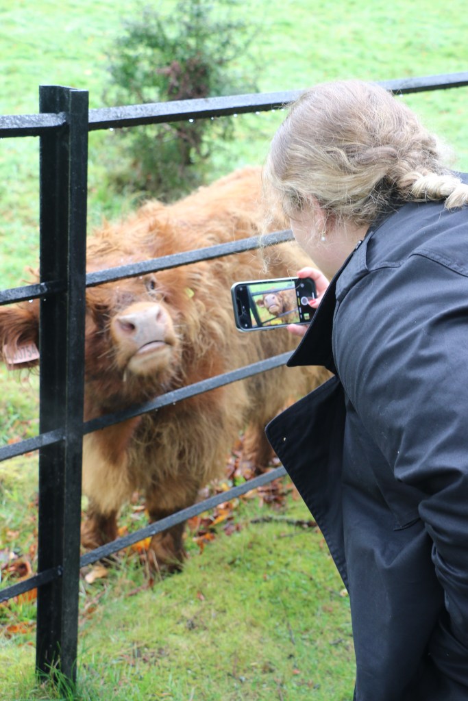 Kate had not seen one close up during our time here, so it was for her that we went. Well, Kirsty and I were secretly excited as well. It’s hard to get anything more Scottish than a big hairy Highland Cow, with a big wet tongue hanging out.