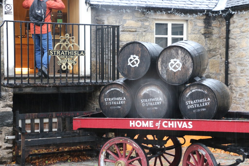 This morning we went to Strathisla distillery at Keith (that’s a town, not a person). It is the home of Chivas Regal. Apparently, every bottle of Chivas has Strathisla in it. They didn’t push the Chivas line too much, and it was really about their single malts. They, and about 4 other “sister” distelleries all have their own single malts as well as contributing to the Chivas blend.