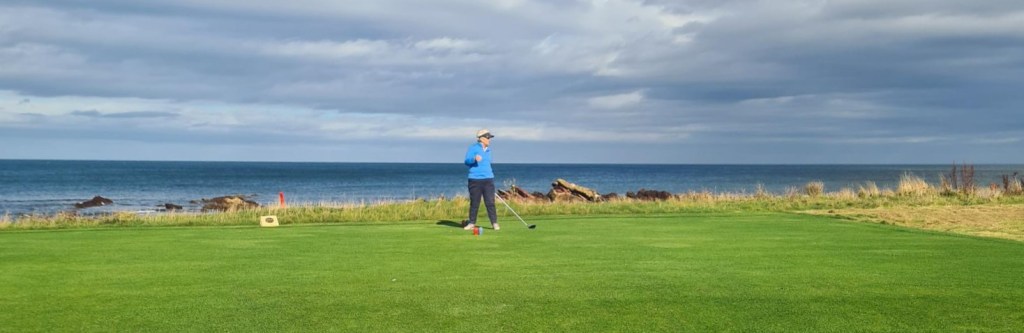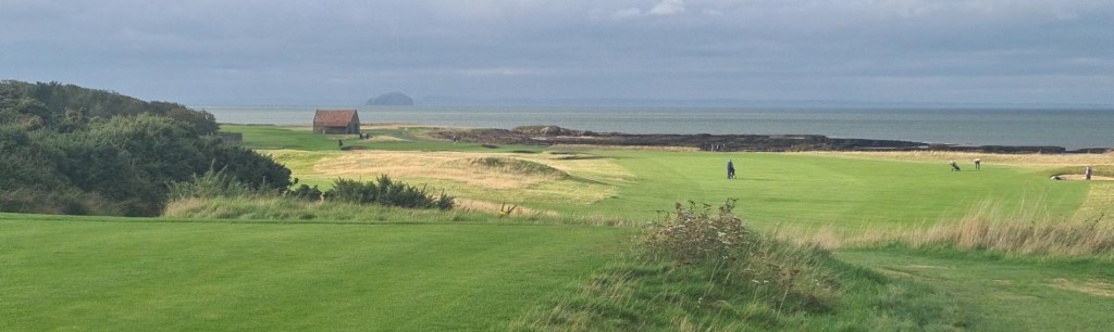 Yesterday, Tuesday, Morag and I played golf at “her” course at Dunbar. She was the lady’s President for some time, so is well known. What an experience to play a seaside links course of the quality of Dunbar…..I beat her one up on the 18th !!